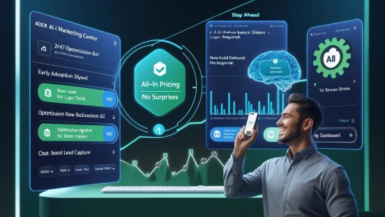 AdEx keeps your business ahead with flat, all-in pricing, 24/7 AI-powered optimization, and real-time notifications for every lead—no logins needed. We combine expert management with the latest tech, instantly adopting new tools and channels as they emerge, so you capture every opportunity and always stay one step ahead in local search.